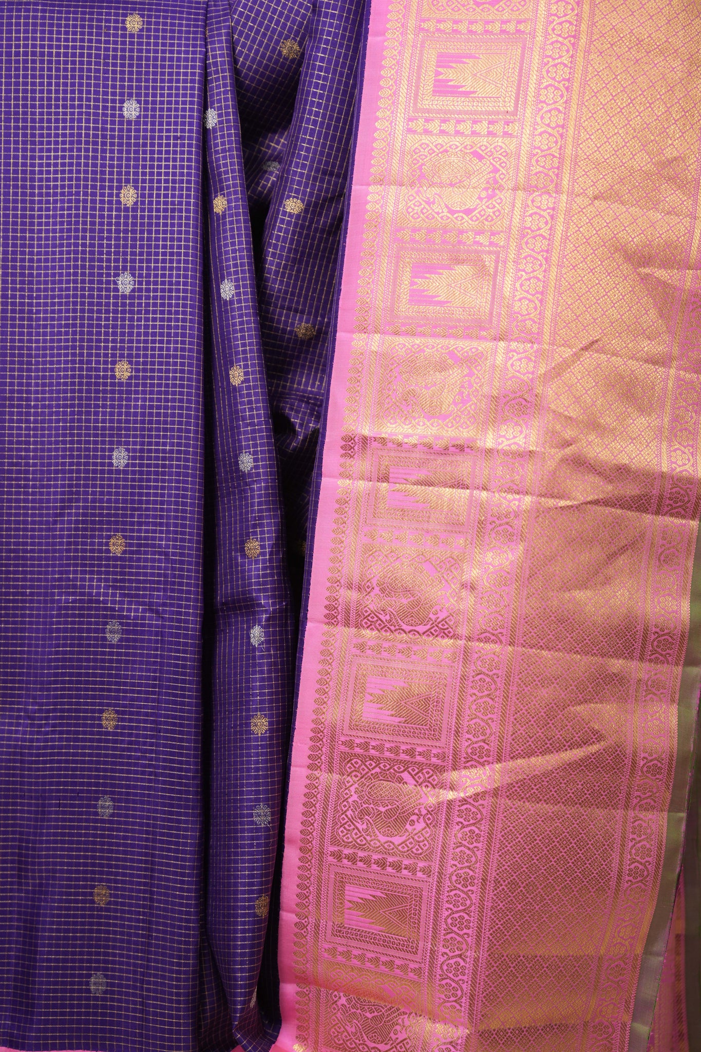Royal Blue Checks Gadwal Silk Saree - SRRBCGSS598